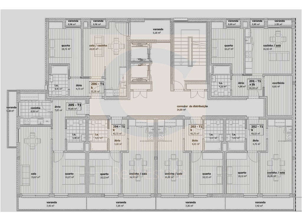 • Pavimento cerâmico no hall do R/C;